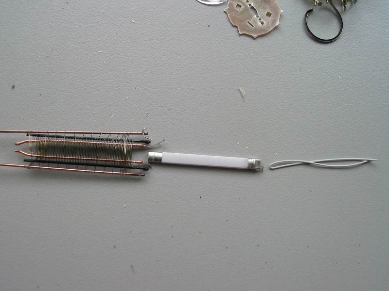 这是颗用于高频放大的通用双三极管6N1。1是吸气剂;2是灯丝阴极和栅极的组合体;3就是阳极。